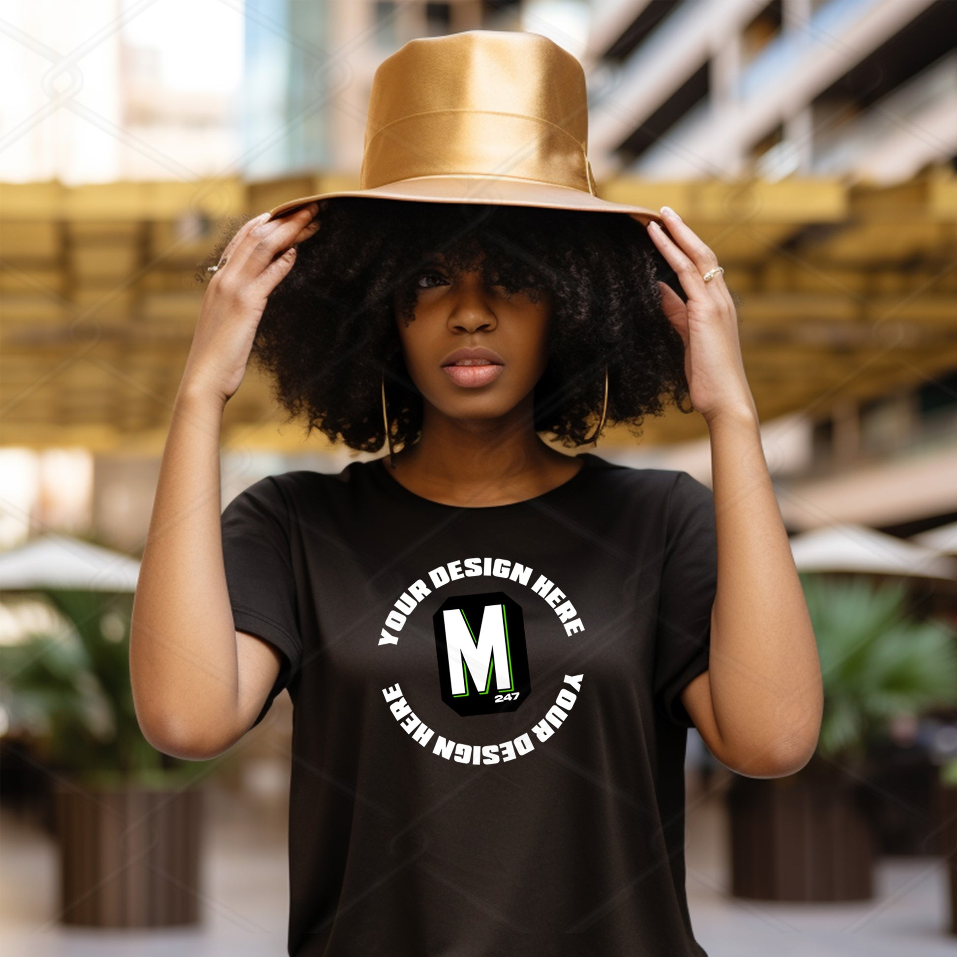 Black woman wearing a black tshirt model mockup.